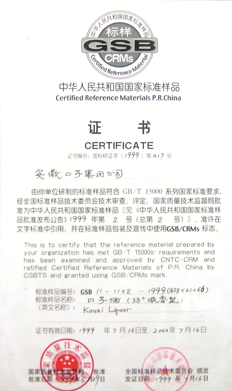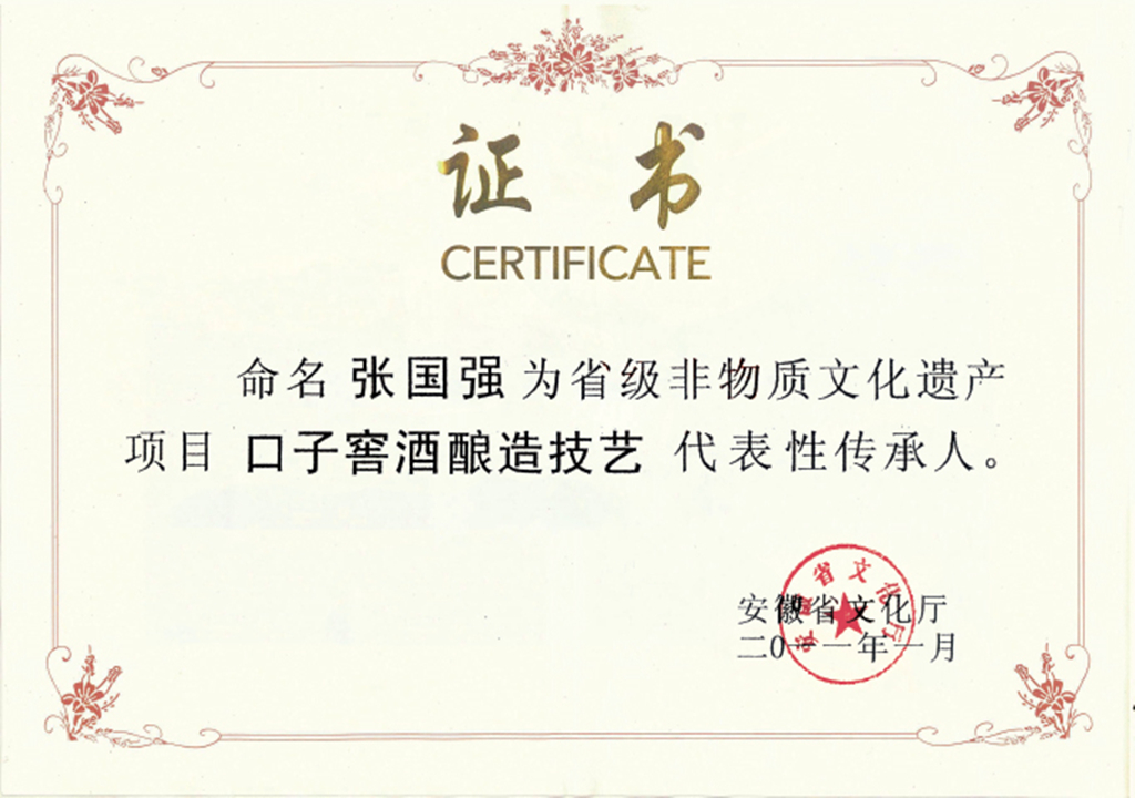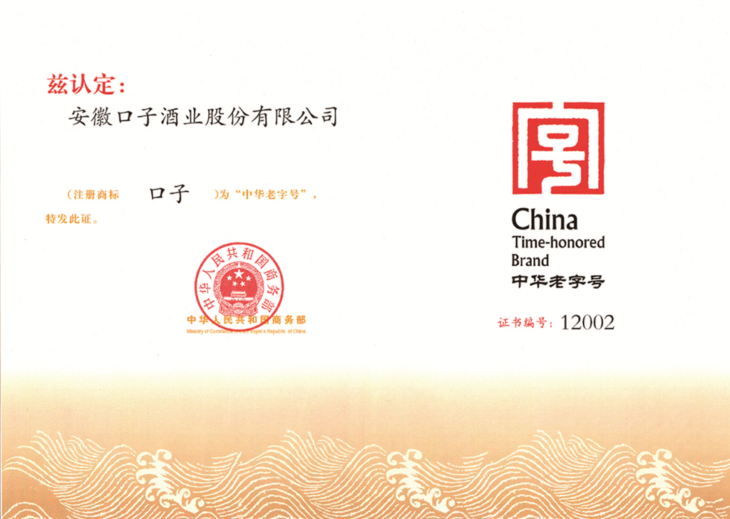 口子商標(biāo)被國家商務(wù)部首批認(rèn)定為中華老字號,公司董事、常務(wù)副總經(jīng)理張國強(qiáng)被評定為首屆中國釀酒大師。